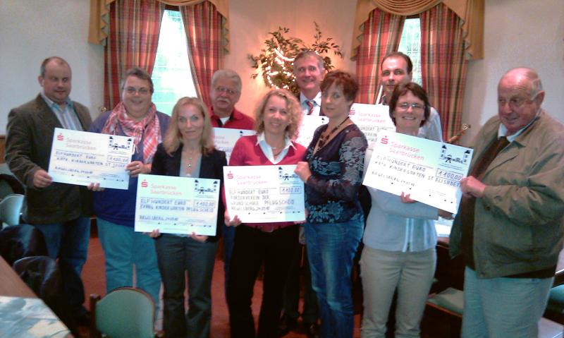 Der Verein zur Verbesserung der Verkehrssituation in Riegelsberg e.V. spendete sein Vereinsvermögen bei seiner Auflösung im Haus Gabriel an Schulen und Kindergärten; von links: Christoph Mang, Brigitte Schreiber, Eva Gammel, Gert Marchlewitz, Diana Lion, Thomas Billotet, Marion Schwedt, Andreas Streitbürger, Andrea Groß und Heribert Schmidt.